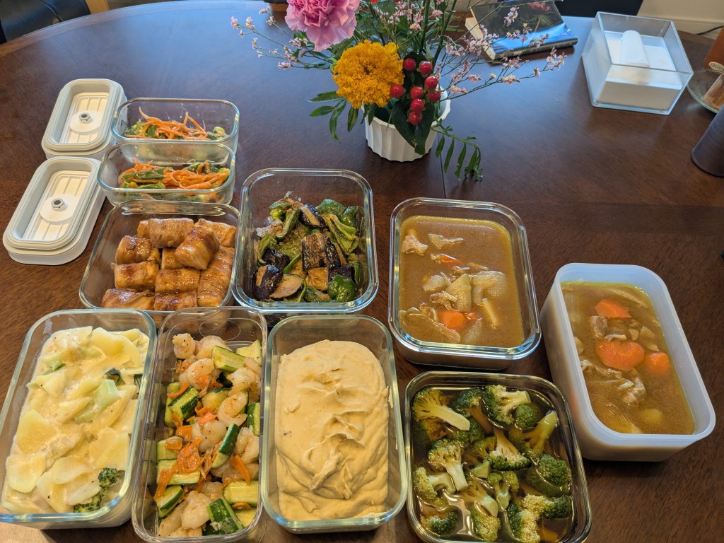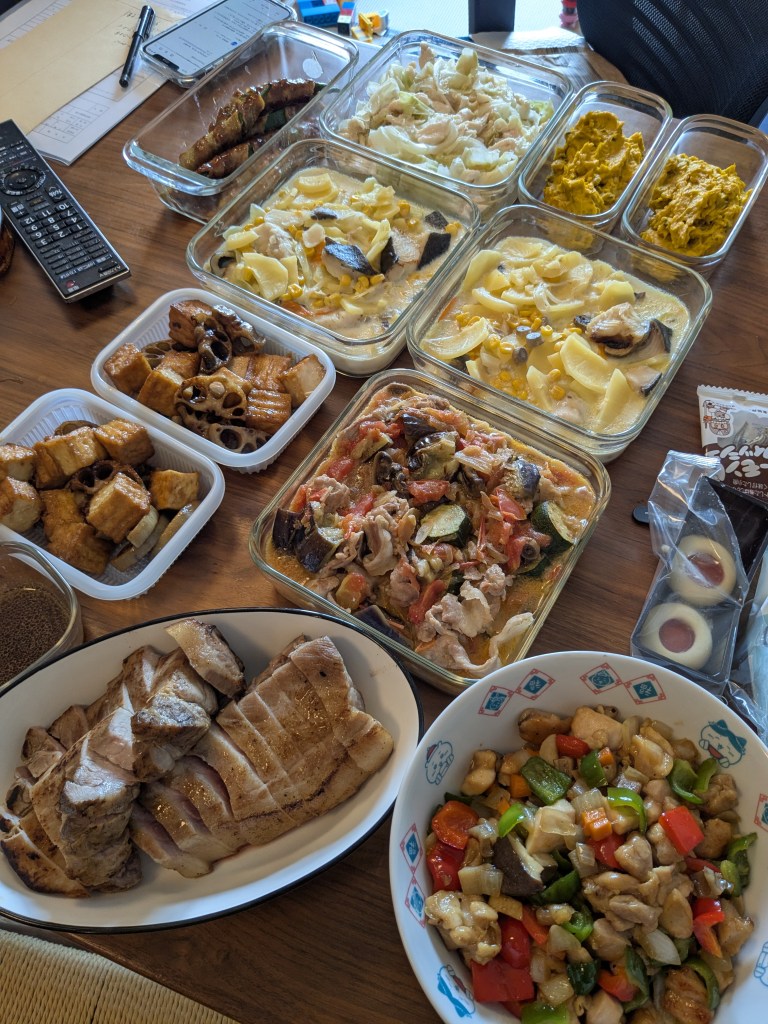 具材の多いサラダとガンボも作ったので、息付く暇がなかったですが、なんとか3時間ちょっとで終えられました。