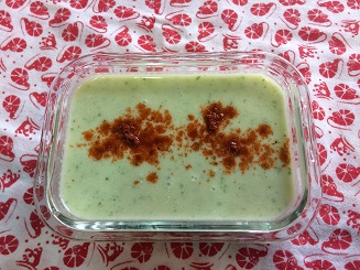 暑い日にお薦めの、さっぱりとした味わいのキュウリのガスパチョ風です。