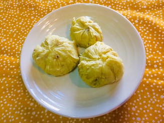 4,ラップの上にのせて、きんとん状に形作り完成!
