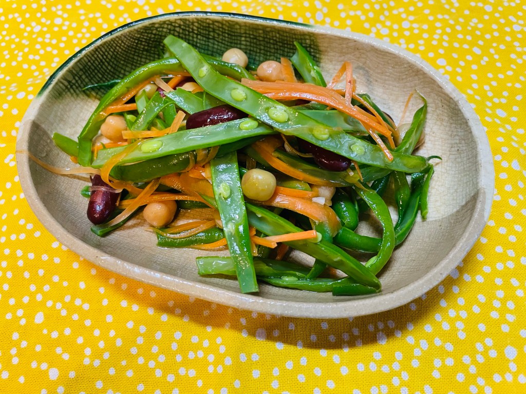 今日はインゲンと人参、ミックスビーンズを使った簡単なマリネをご紹介します。